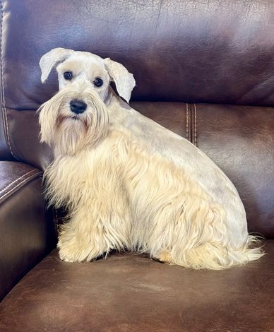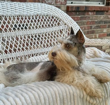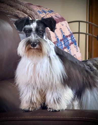 Swifty was born and raised with us at the farm. Her momma is Hera and her Daddy is "Dak". Dak was our first Daddy dog in our program. Swifty has the best "roo roo's" ever! She's 13lbs of pure mega hair! She's a sweet loving docile temperament. She is also AKC registered and embark tested clear.