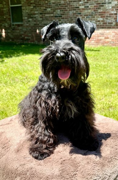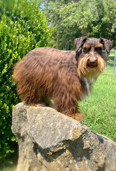 Rose was born and raised with us here at the farm. Her momma is our retired “Gypsie”. She is akc registered and embark tested clear. She’s 15lbs and the darkest black shinny coat! She’s an absolute love bug and talker when she doesn’t get her way. Shes famous for trying to grab the edge of our shirts as we walk by.